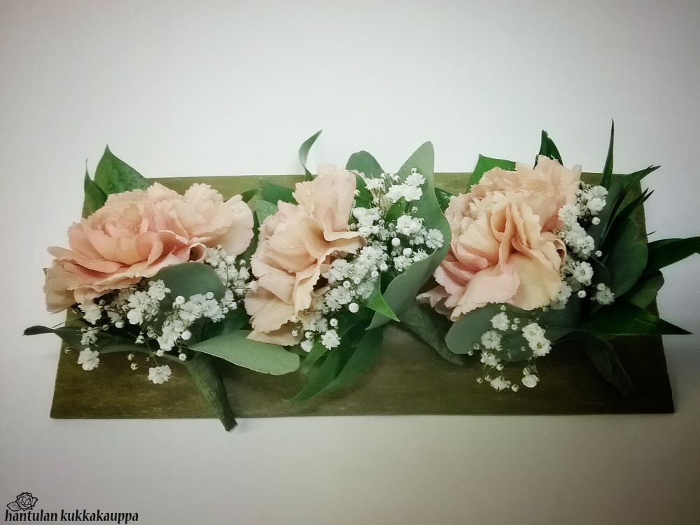 Voit siis aivan vapaasti esittää floristille toivomuksesi ja näkemyksesi siitä millaisen kimpun haluaisit. Yhdessä sitten pohditaan mallin sopivuutta esimerkiksi pukuun ja morsiamen olemukseen. Floristi auttaa myös muiden hääjuhlien kukkien suunnittelussa. Sulhasen viehe kuuluu ilman muuta asiaan, ja usein rintakukat tehdään myös bestmanille ja mahdollisille sulhaspojille. Mieti haluatko rintakukat myös vanhemmille. Kaason ja morsiustyttöjen kukat voivat olla vieheitä, pääseppeleitä, kimppuja tai pieniä kukkakoreja. Tarvitsetko heittokimpun? Kirkon sekä juhlapaikan koristelussa autamme myös.